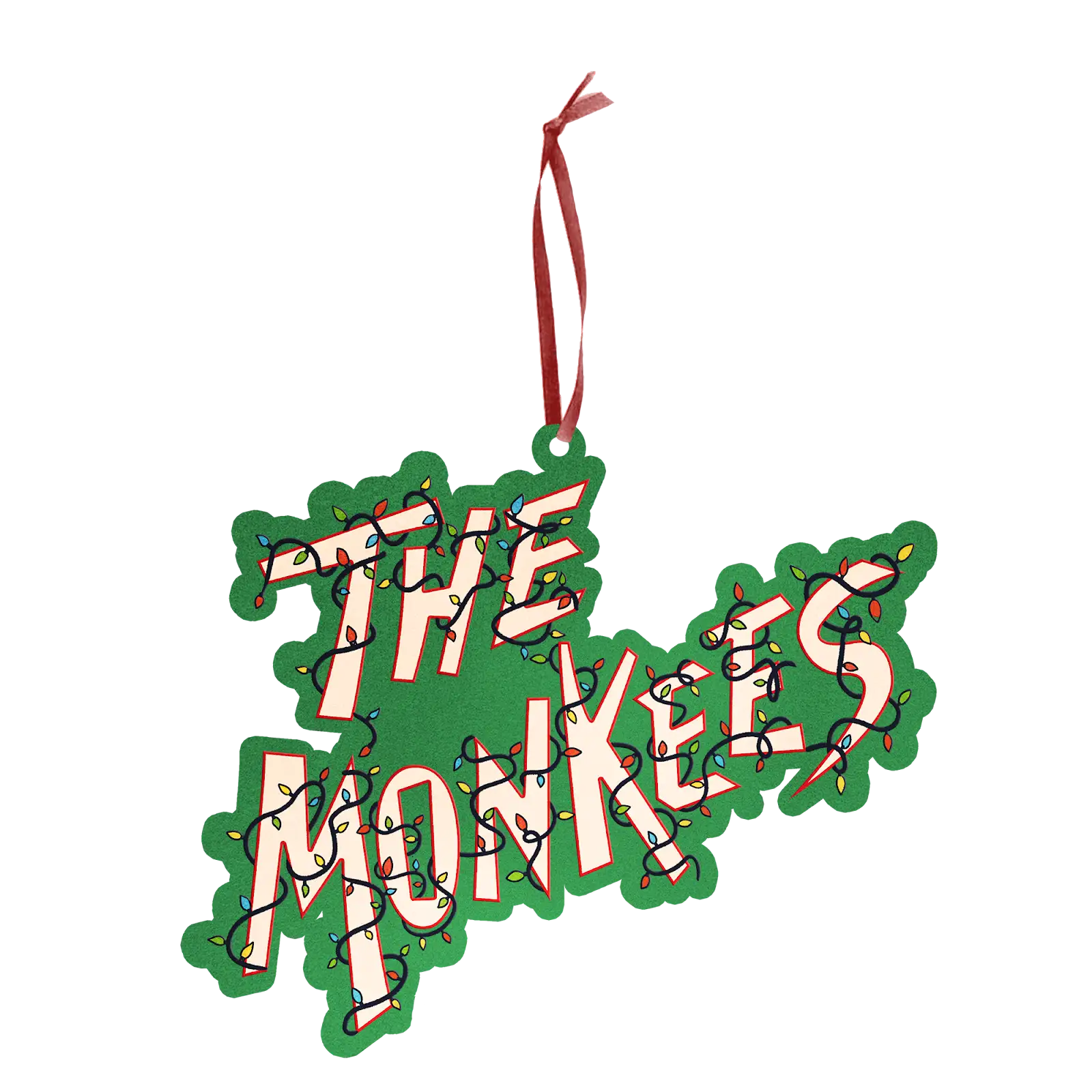 Approximately 2" high die cut ornament with color ink fill in fun new holiday logo design.